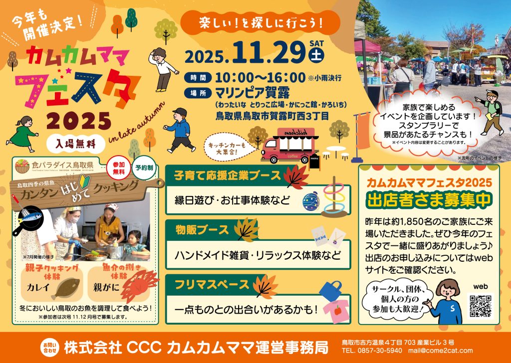 昨年、約1850名の来場者さんとアイエム電子鳥取砂丘こどもの国さんで楽しい一日を過ごしたカムカムママフェスタ。